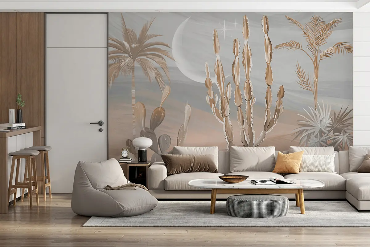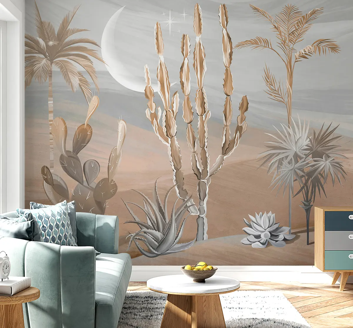 Fototapeedid 3D kõrb kaktuste ja troopiliste lehtedega Nr u96444