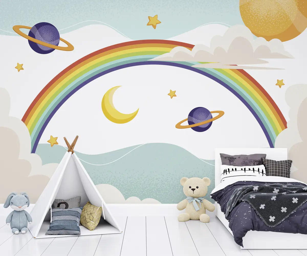 Fototapeedid Vikerkaar pilvedes, planeedid, tähed Nr u94327