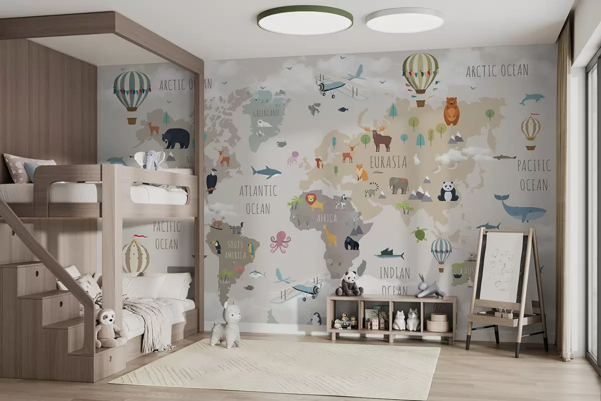 Fototapeedid Maailmakaart loomade ja õhupallidega Nr u96461