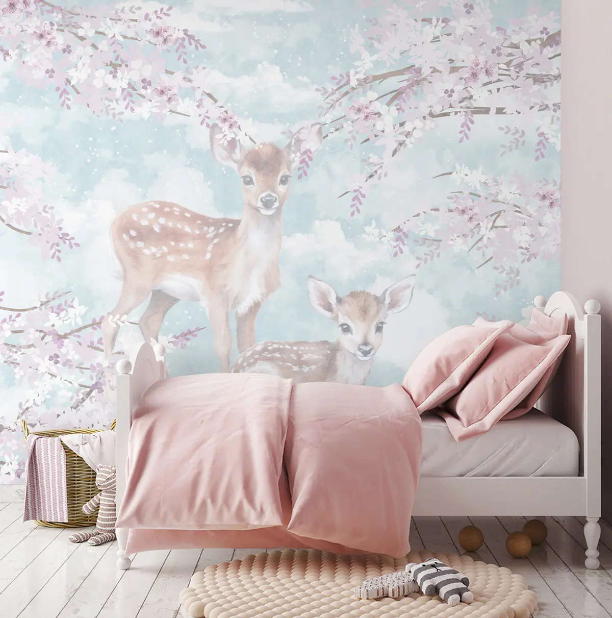 Fototapeedid Fawns õitsevate puude seas Nr u97464