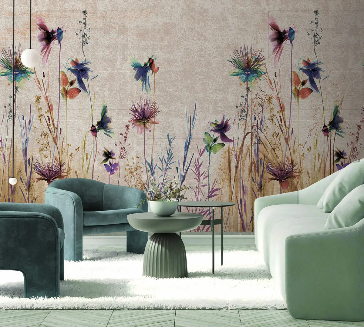 Fototapeedid Ebatavalised kõrged lilled beežil taustal Nr u93672