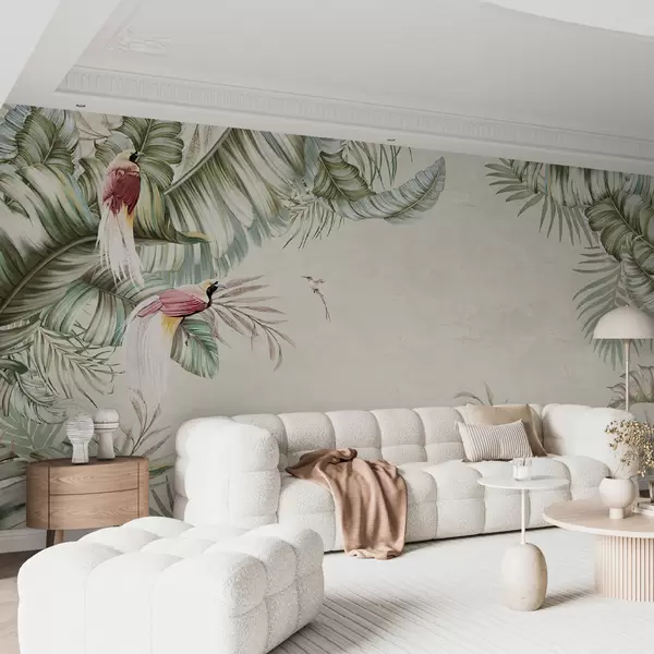 Fototapeedid Troopilised taimed ja linnud tekstureeritud taustal Nr u96550