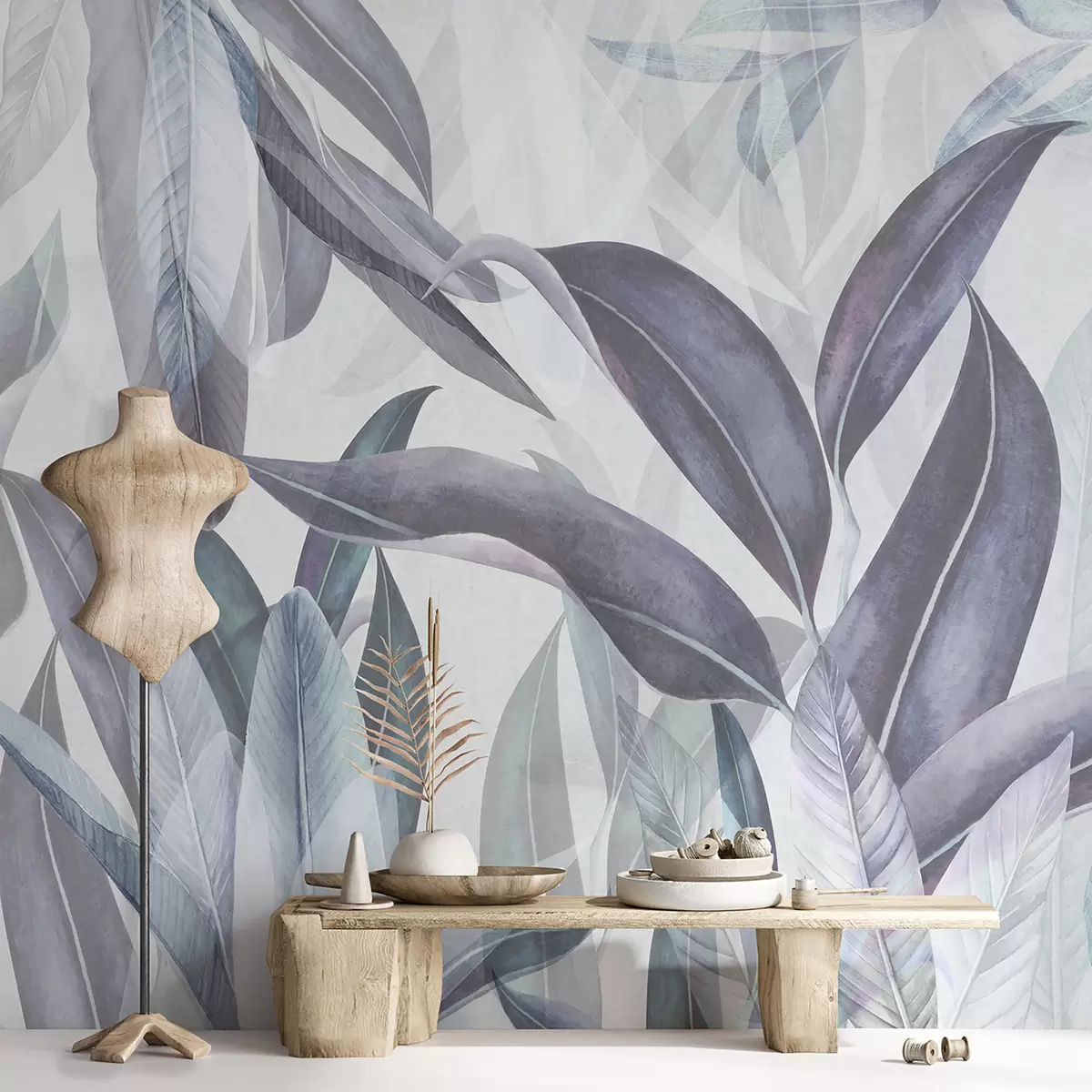 Fototapeedid Rohelised ja roosad palmilehed sinistes värvides Nr u94302v1