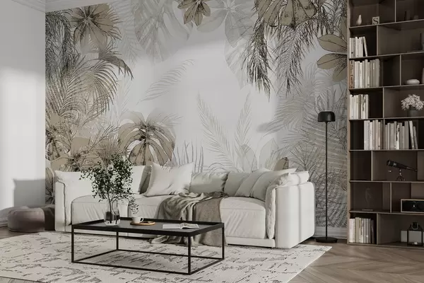 Fototapeedid Troopilised puud ja lehed metsas valgel taustal Nr u96472