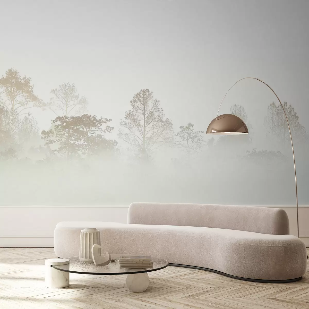 Fototapeedid Puusalu siluett paksus valges hommikuudus u97405