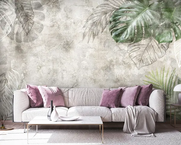 Fototapeedid Troopilised lehed vananenud seinal Nr u93964