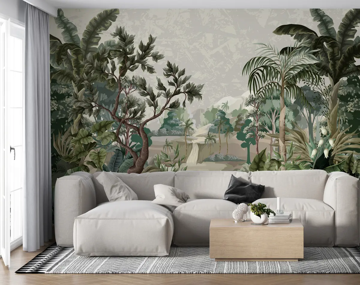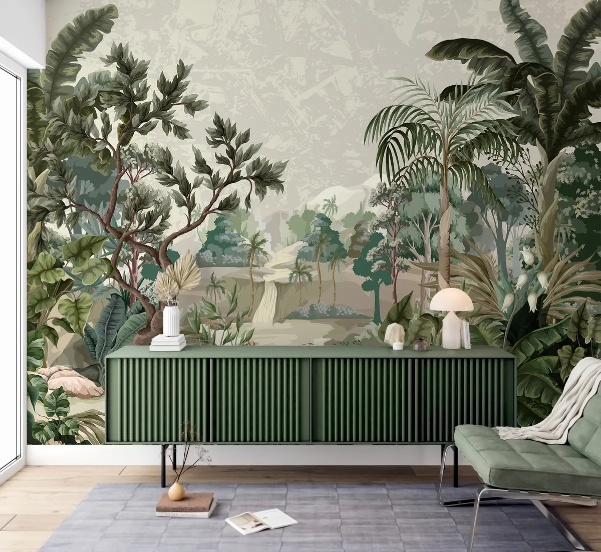 Fototapeedid Džungel jõe ja palmipuudega Nr u95915