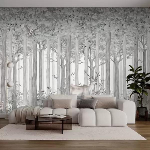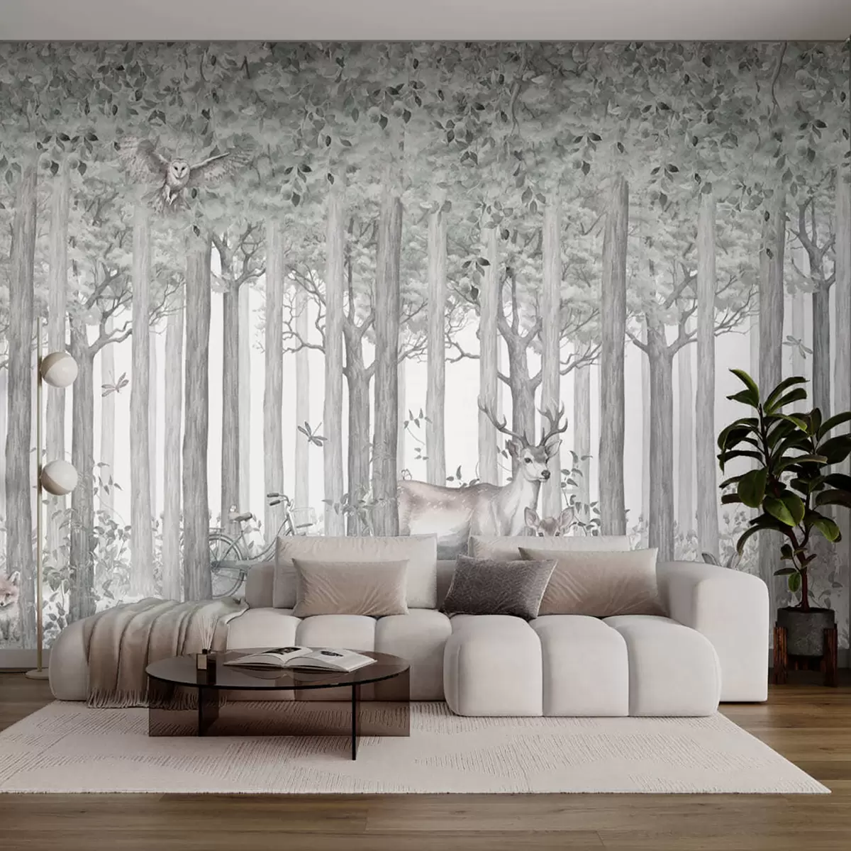 Fototapeedid Metsloomad hirv ja öökull halli värvi Nr u97629v1
