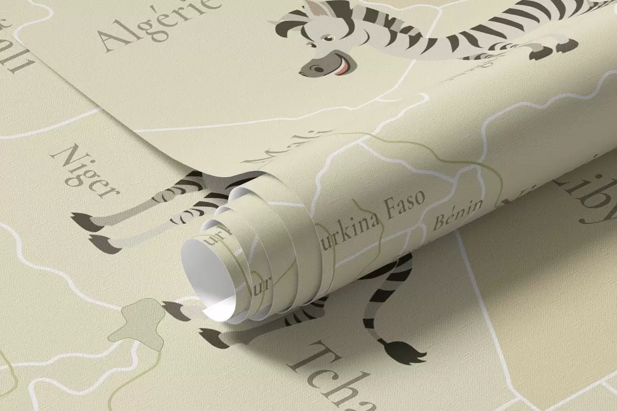 Fototapeedid Laste maailmakaart loomade, lennukite ja kuumaõhupallidega. Prantsuse keeles. Roheline värv Nr c00003frv2