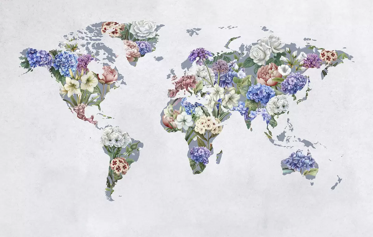 Fototapeedid Erinevatest erksavärvilistest lilledest koostatud värvikas maailmakaart Nr c00006