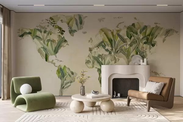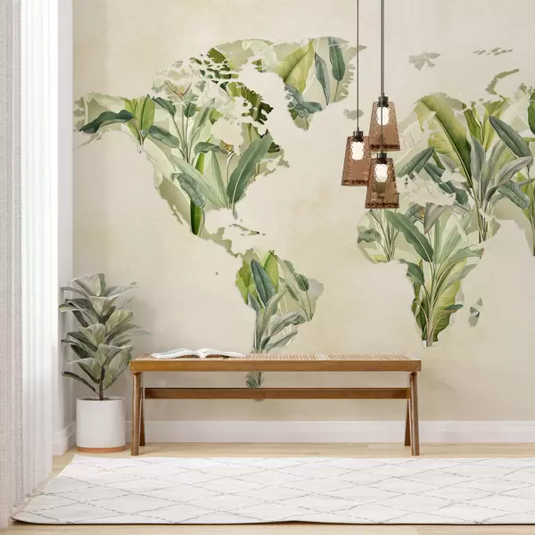 Fototapeedid Banaanilehtedest valmistatud roheline maailmakaart Nr c00007