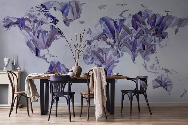 Fototapeedid Banaanilehtedest valmistatud lilla maailmakaart Nr c00007v1