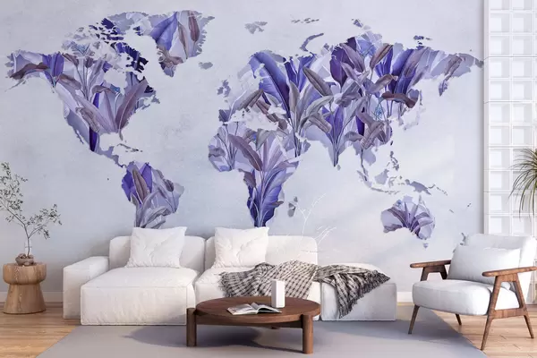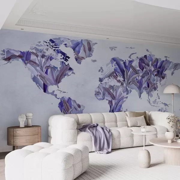 Fototapeedid Banaanilehtedest valmistatud lilla maailmakaart Nr c00007v1