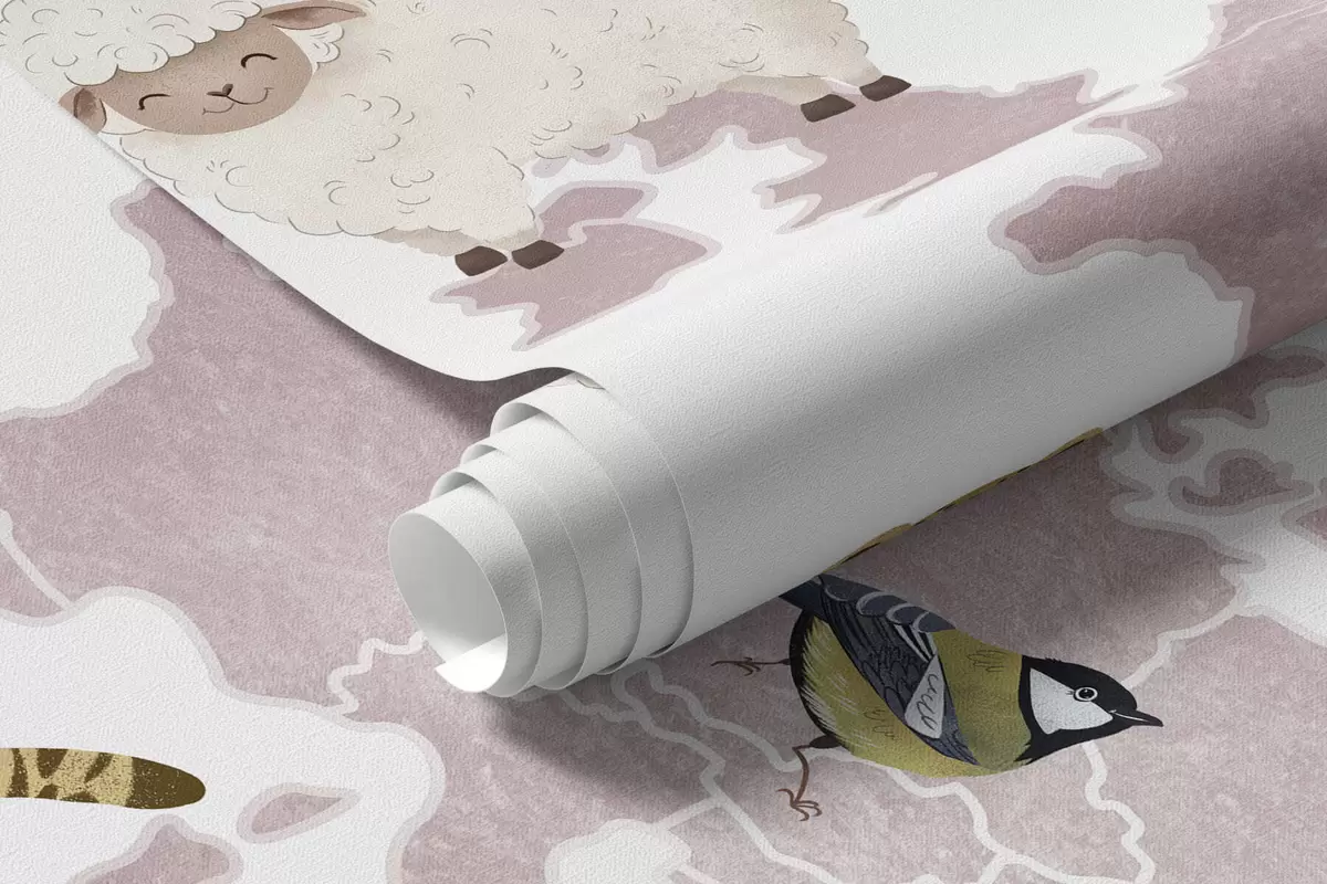 Fototapeedid Akvarellistiilis beež kaart, millel on kujutatud loomi. Kirjed poola keeles Nr c00012plv3