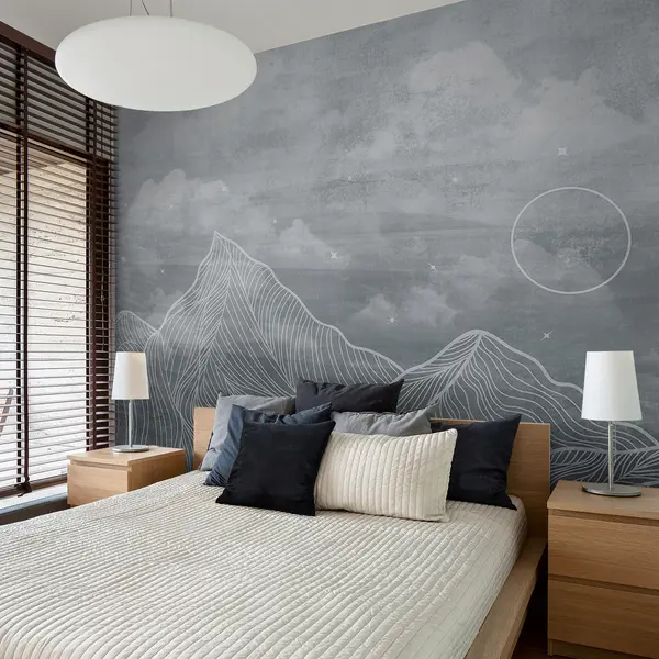 Fototapeedid Grunge tekstuur koos pilvede ja mägedega, hall värv, looduse teema kunst Nr u98838v1