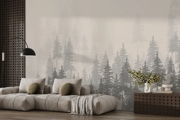 Fototapeedid Monokromaatiline illustratsioon igihaljastest metsadest Nr u99076