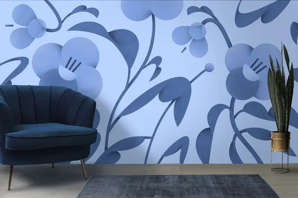 Fototapeedid Dekoratiivsete siniste lilledega botaaniline trükis Nr u99196v8
