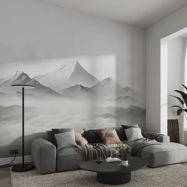 Fototapeedid Mäed pilvedes, udu, hall värv, maastik Nr u99458