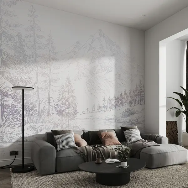 Fototapeedid Alpi mägede maastik, minimalism, lillad värvid Nr u99569v1