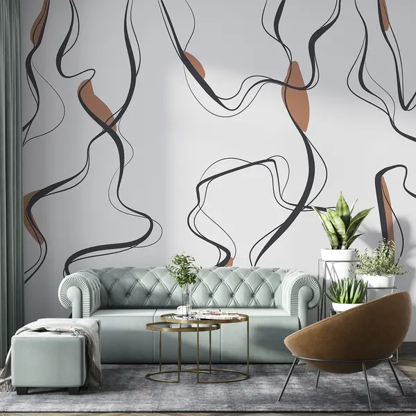 Fototapeedid Tindijoonistus kunst, abstraktne muster, geomeetrilised jooned, hall ja oranž Nr u99659v3