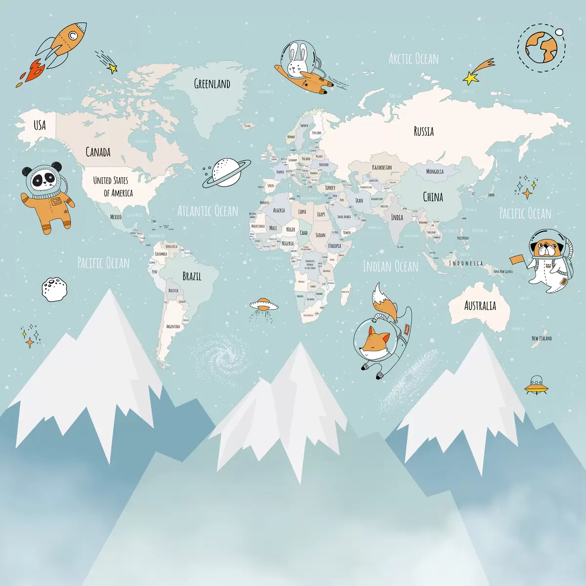 Fototapeedid Maailma riikide kaart loomade astronautidega Nr w00066d1