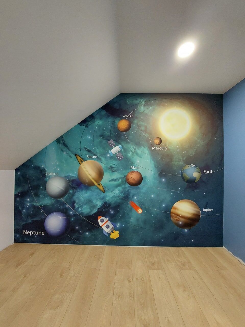 Fototapeedid Värviline illustratsioon, mis kujutab erinevaid planeete ja kosmoseakvarelli Nr w00539