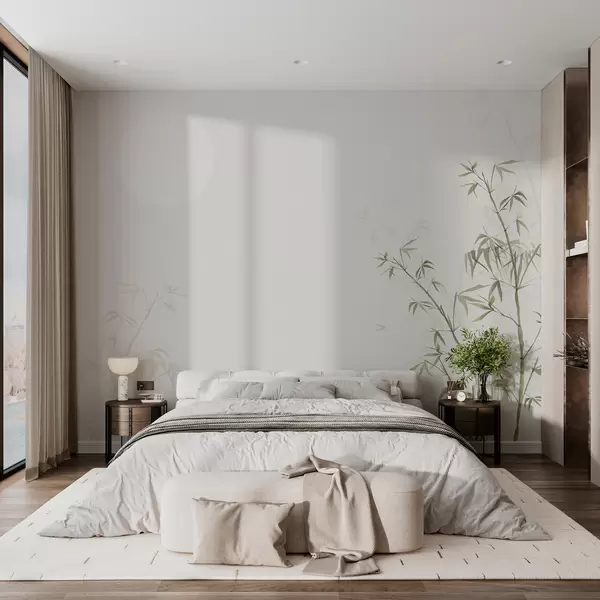 Fototapeedid Minimalismi stiilis Jaapani taime bambus ja päike Chinoiserie roheline värv Nr w00547
