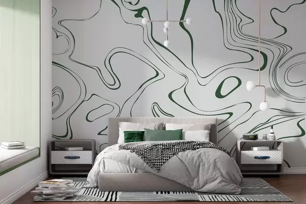 Fototapeedid Vedelad jooned rohelise ja valge värviga Nr w00634v3