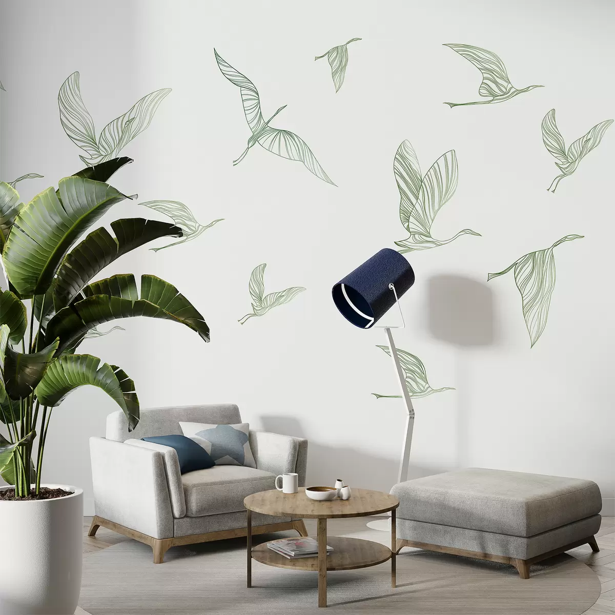 Fototapeedid Lendavad linnud line art, minimalism, loodus, rohelised värvid Nr w00758v2
