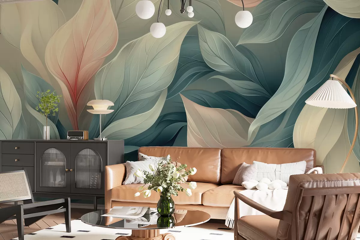 Fototapeedid Abstraktsed sügislehed pehmetes sinakasoranžides toonides Nr w01280