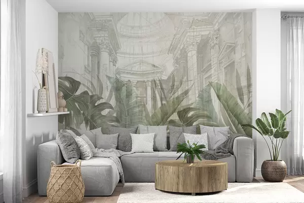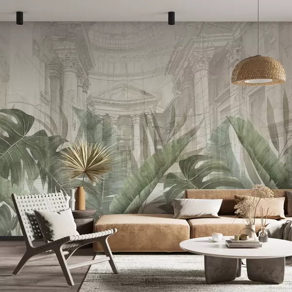 Fototapeedid Suurejooneliselt joonistavad ehitud arhitektuursed marmorsambad ja lopsakad troopilised rohelised taimed  w01311