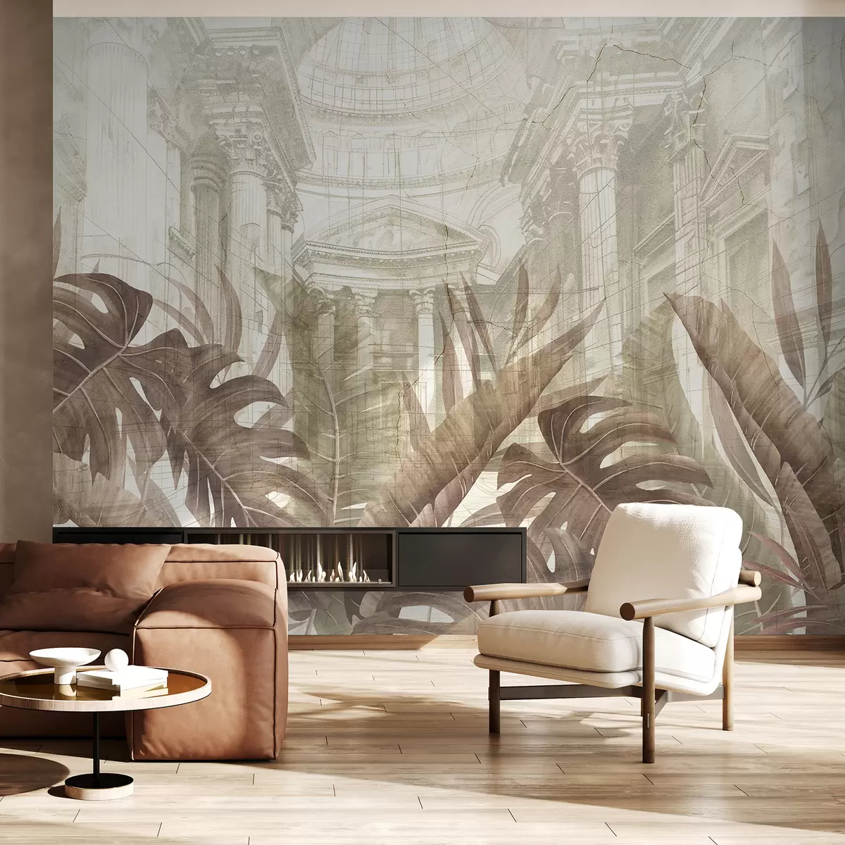 Fototapeedid Suurejooneliselt joonistavad ehitud arhitektuursed marmorsambad ja lopsakad troopilised seepiataimed Nr w01311v1