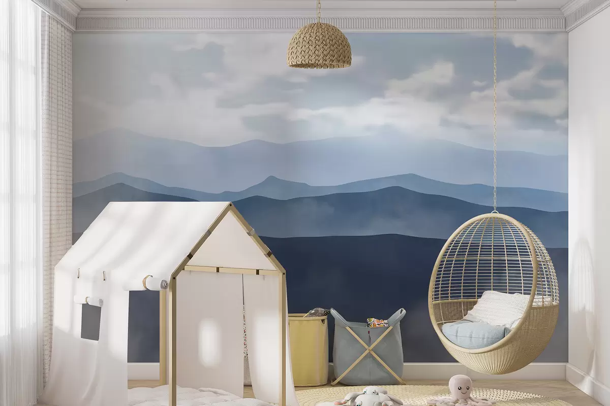 Fototapeedid Udune minimalistlik mägimaastik rulluvate küngaste ja pilvise taevaga Nr w01317
