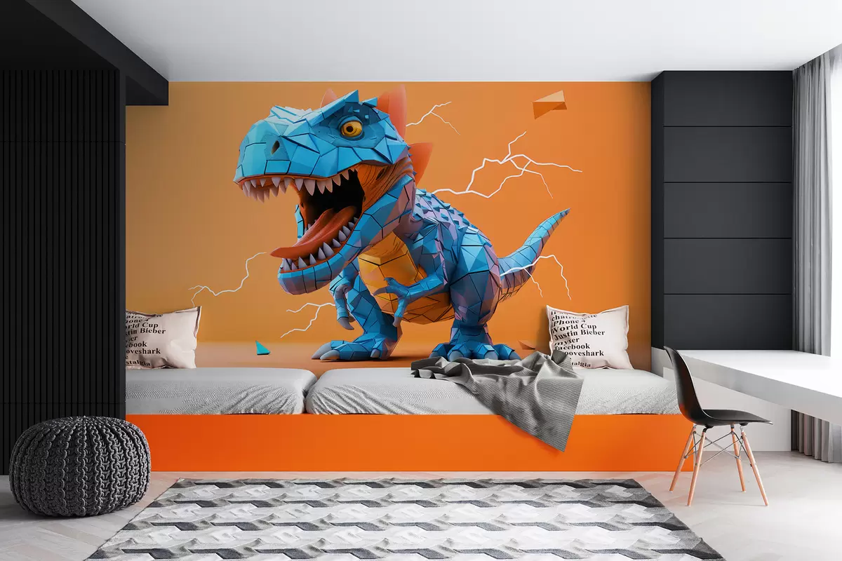 Fototapeedid Metsik dinosaurus välgulöögiga kollases ja sinises värvitoonis Nr w01333v1