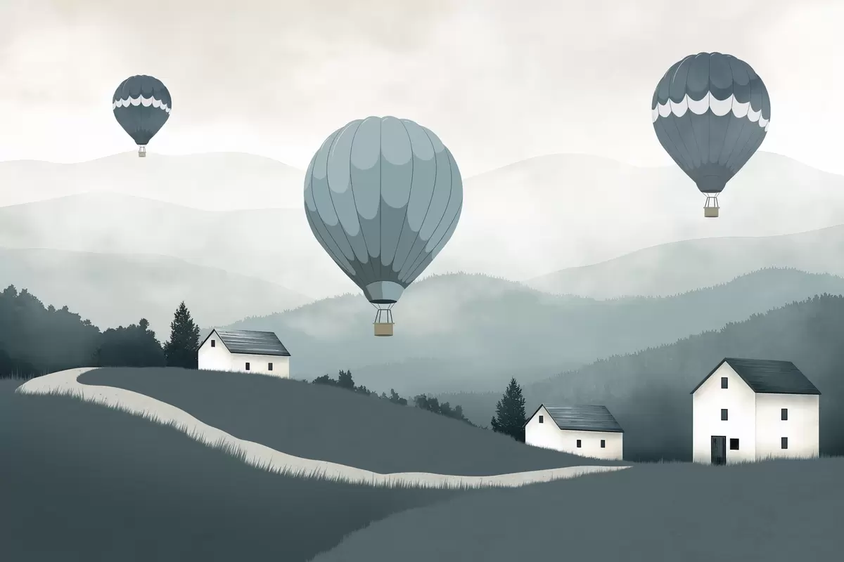 Fototapeedid õhupallid üle maastiku sinistes toonides Nr w01376