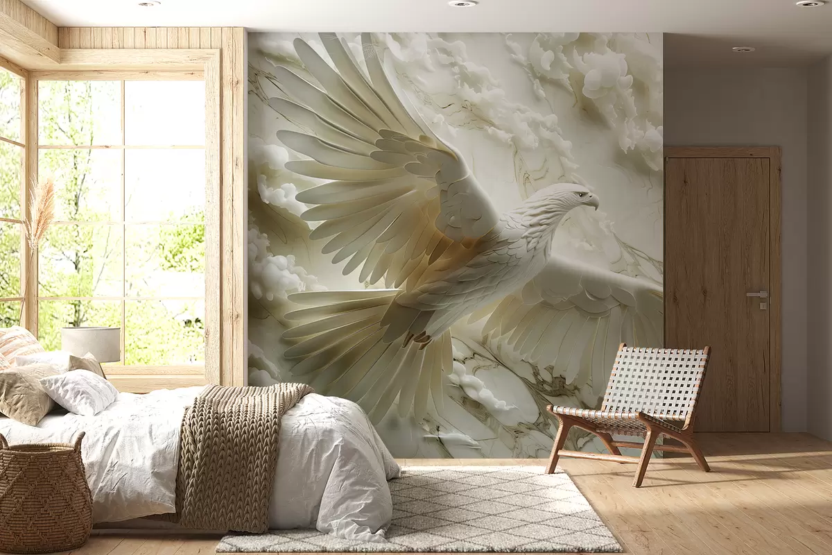 Fototapeedid 3D valge kotkas pilvede ja marmori taustal Nr w01477
