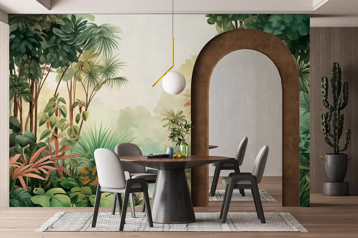 Fototapeedid Akvarell džungelmets, palmipuud, järv, rohelus Nr w01784