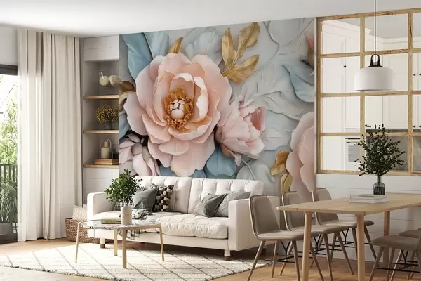 Fototapeedid Luksuslikud kroonlehed ja roosad ploomid pastelsinistes ja roosades toonides Nr w01826