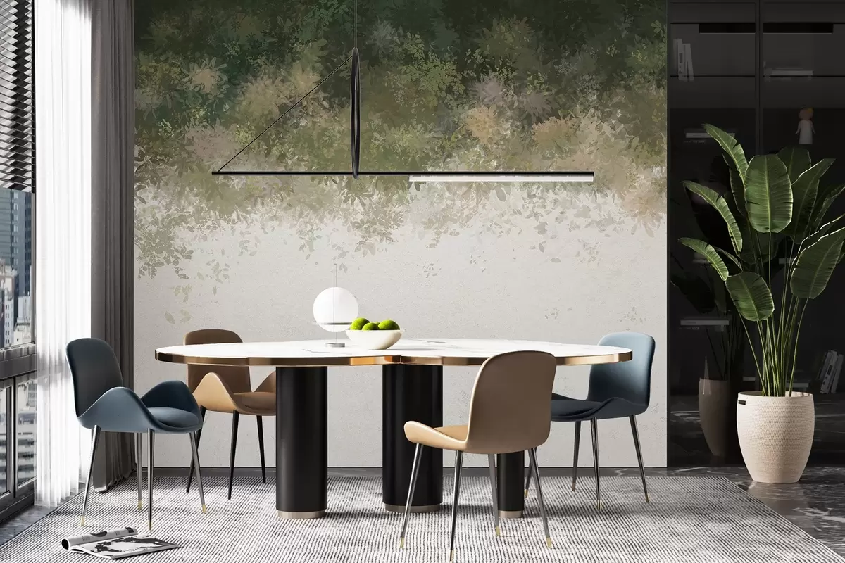 Fototapeedid Ilusad rohelised lehed, lilleornament, akvarell, loodus  w01879