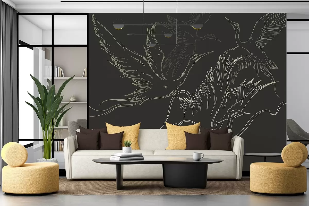 Fototapeedid Linnud lendavad, minimalism, joontehnika, loodus, tume taust Nr w02061v3