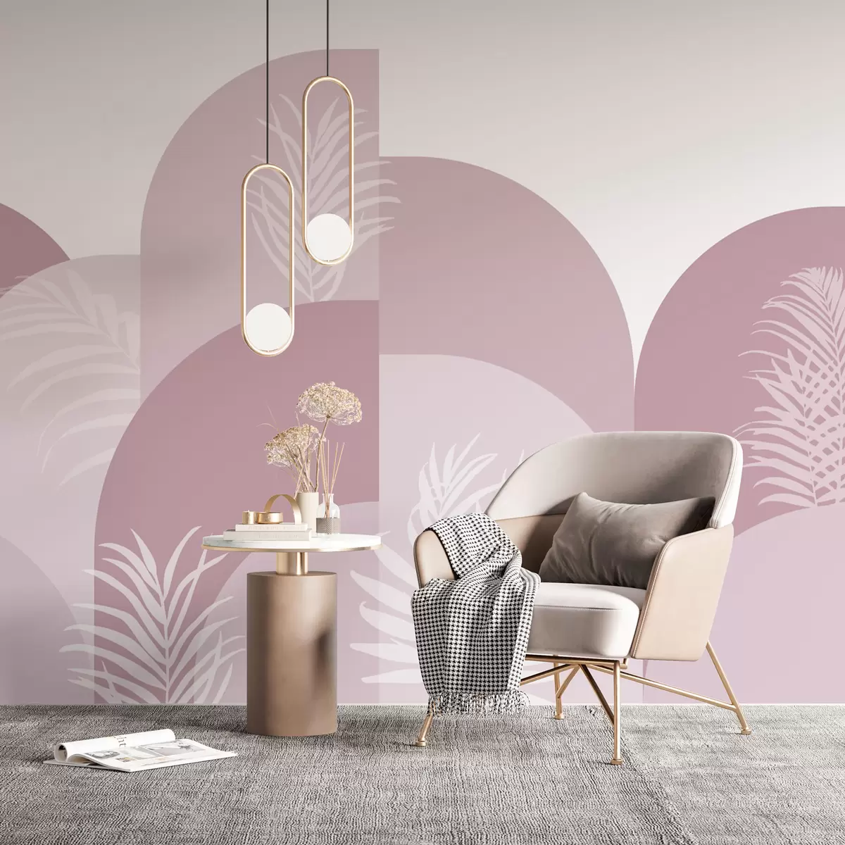 Fototapeedid Trendikas kaared troopiliste lehtedega roosa värvi Nr w02101v4