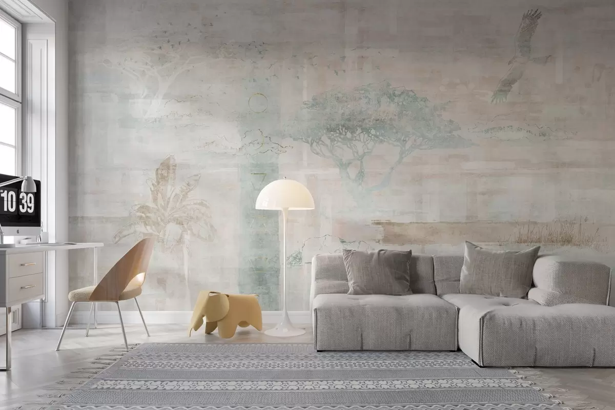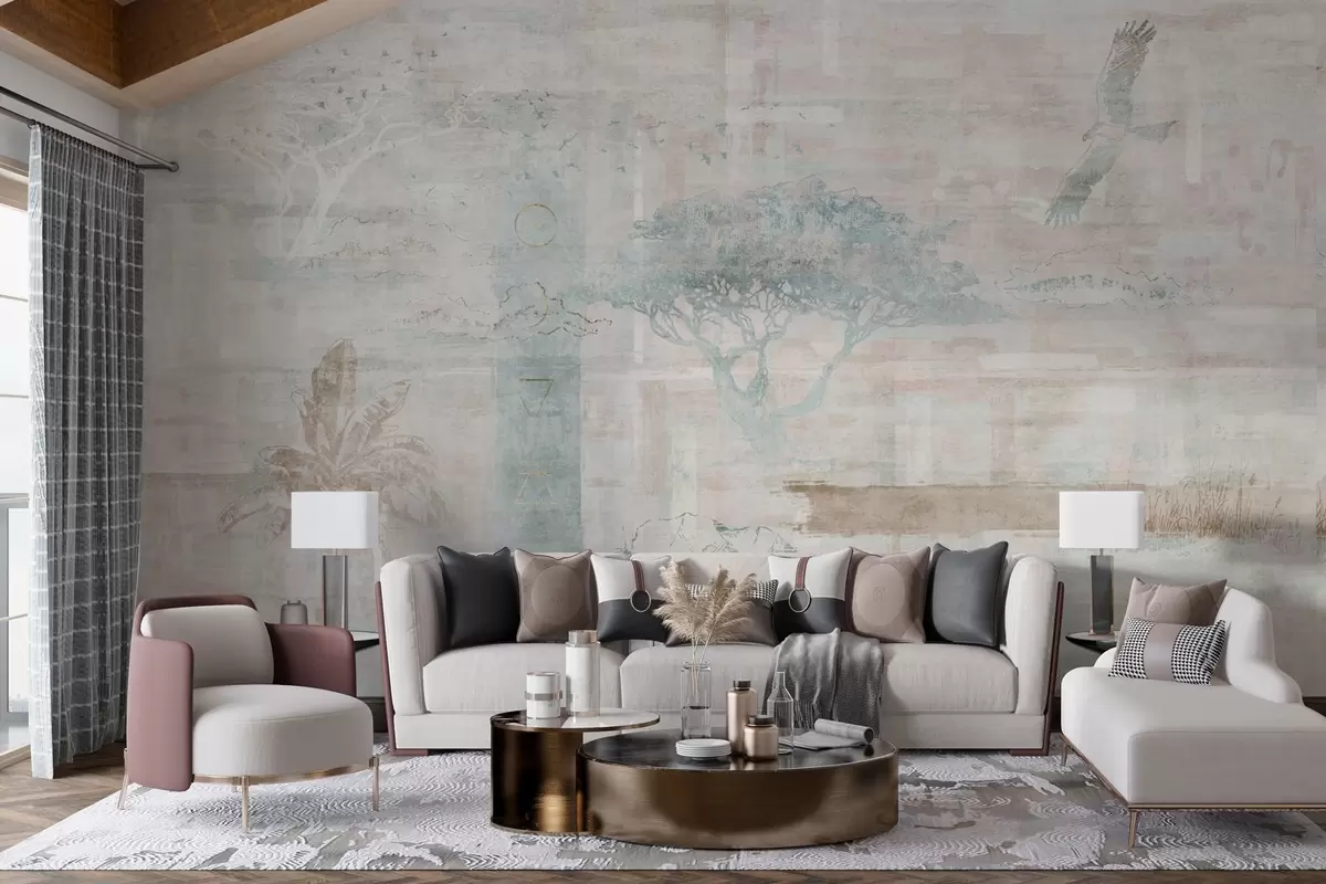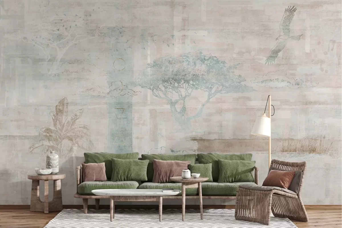 Fototapeedid Vintage grunge-efektiga kujundus puude, kotka ja geomeetriliste elementidega w02130