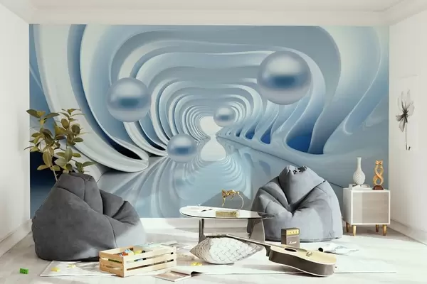 Fototapeedid Futuristlik taustapilt, millel on perspektiivne panoraam tunnelist ja lendavad pärlid Nr w02134