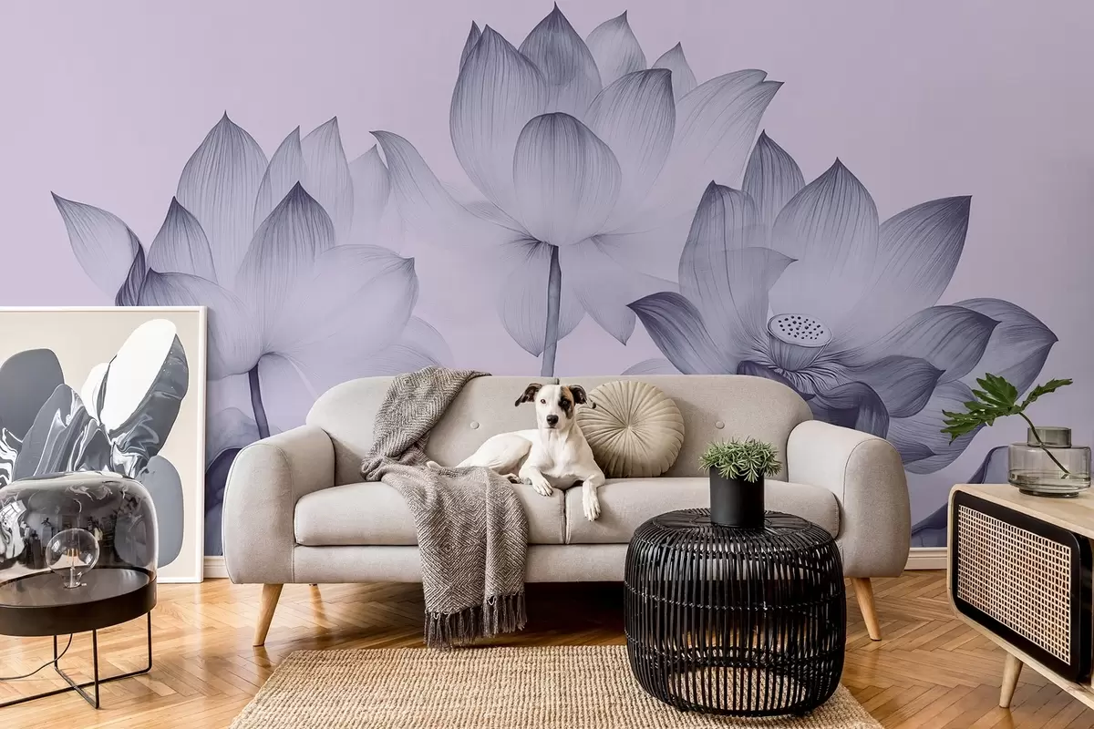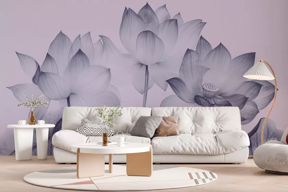 Fototapeedid Kolm lotoosi koos lehtedega hiina maalimise stiilis sinise värviga Nr w02146v2