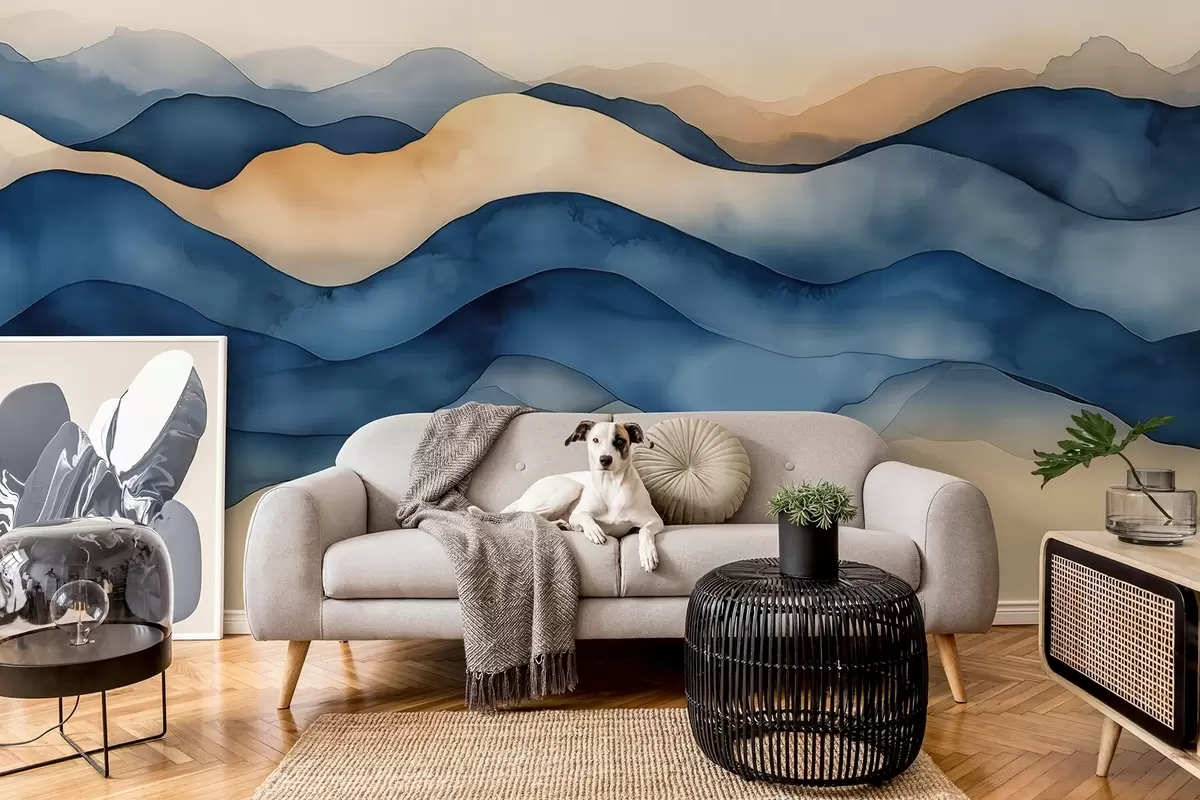 Fototapeedid Abstraktsed sini-beežid lained, mis meenutavad mägesid Nr w02196