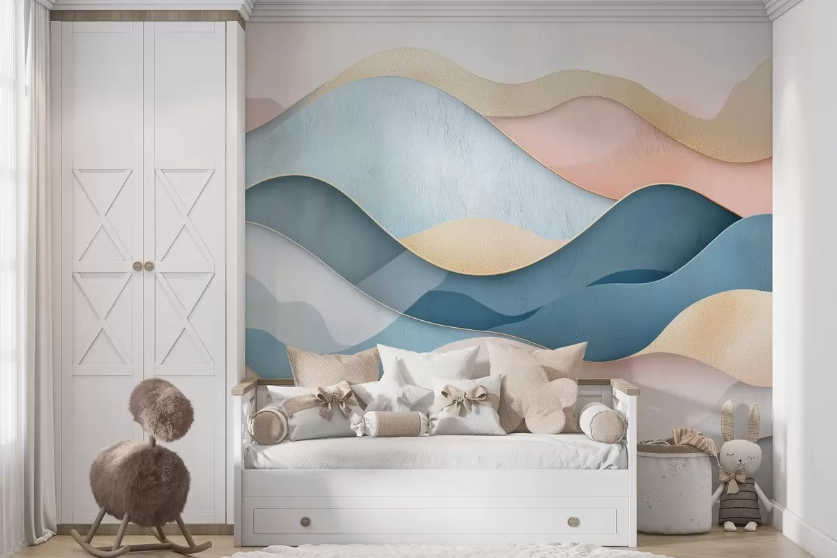 Fototapeedid Roosa ja sinise värvi laineline art déco muster Nr w02290