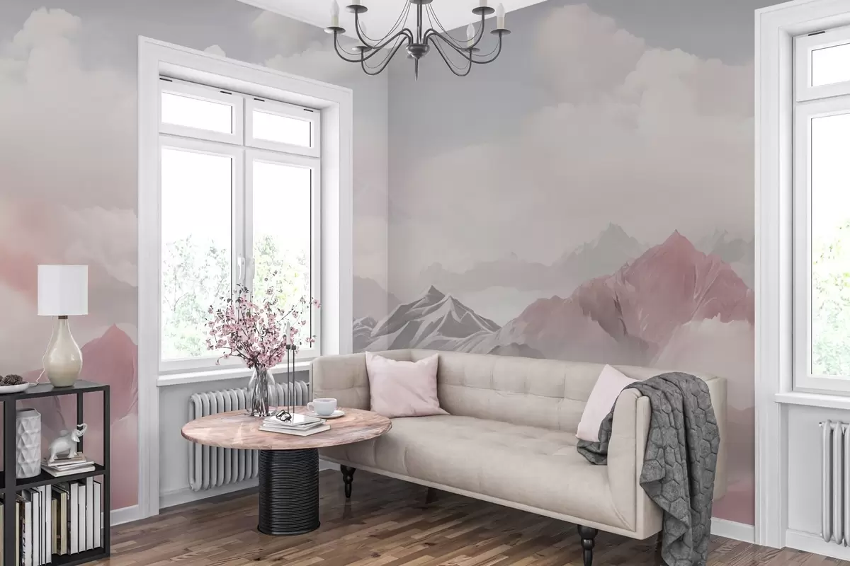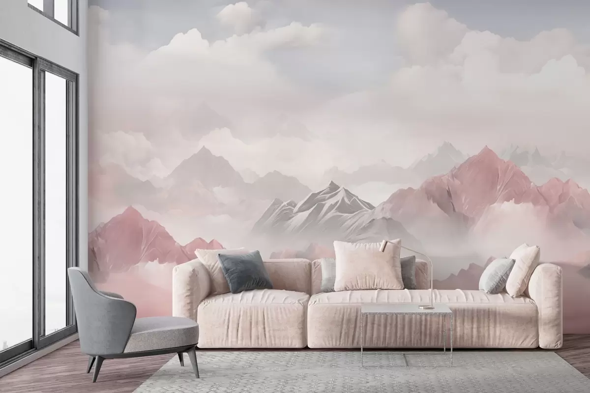 Fototapeedid Roosad mäed udus ja pundunud pilvedes Nr w02296