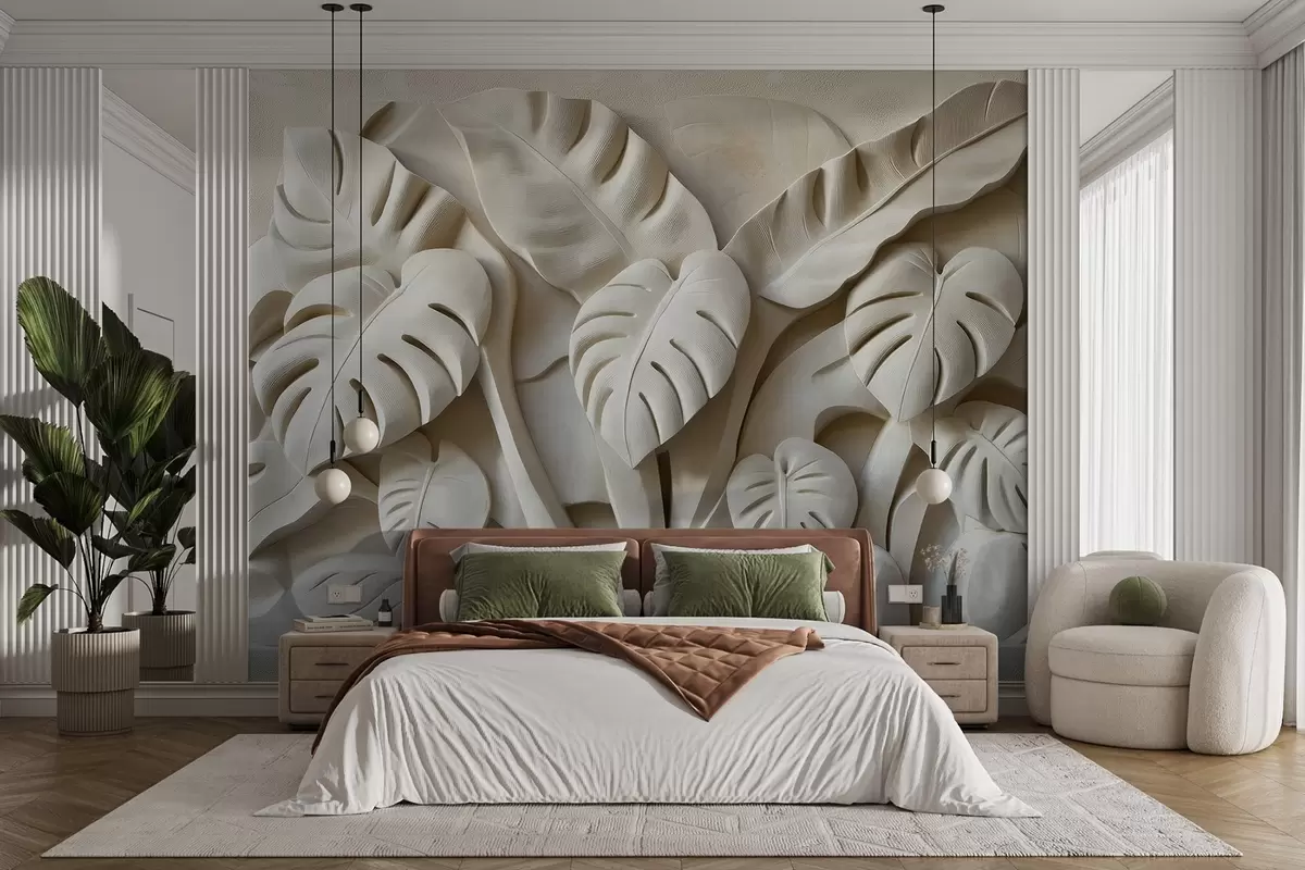 Fototapeedid Suurte monstera lehtede baasreljeef Nr w02312