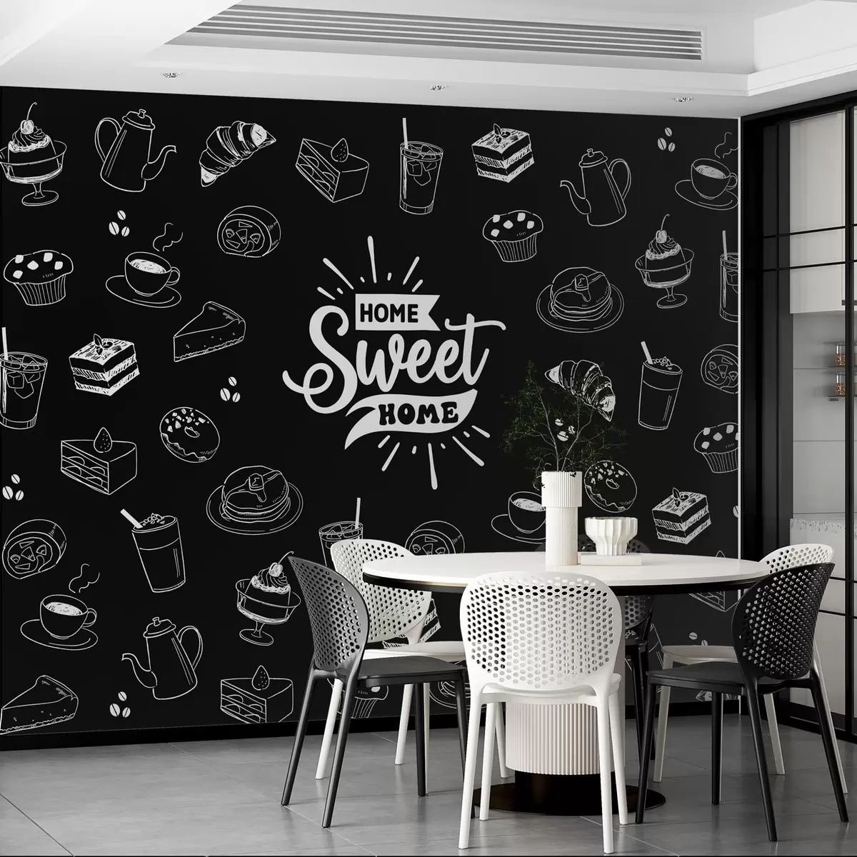 Fototapeedid must tapeet köögi jaoks valge mustriga Nr w02349