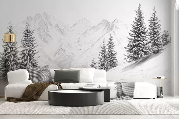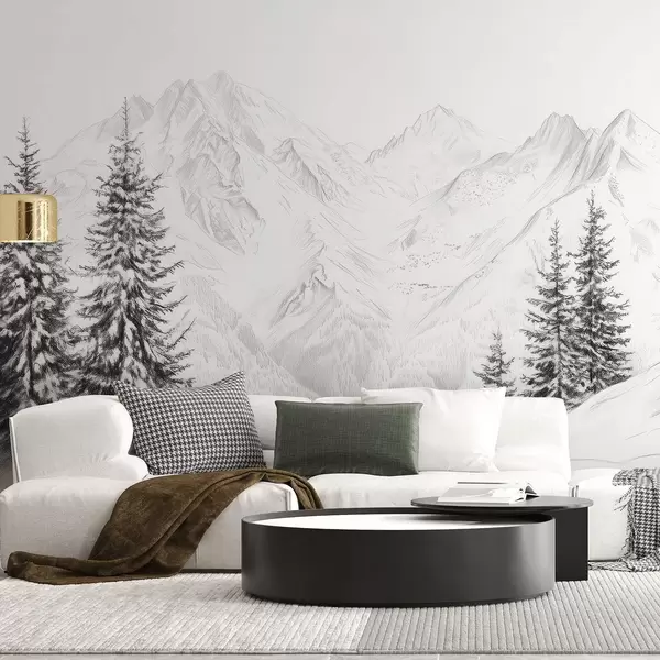 Fototapeedid Lumine mägi, pliiatsiga joonistus, minimalism, mets, loodus Nr w02351